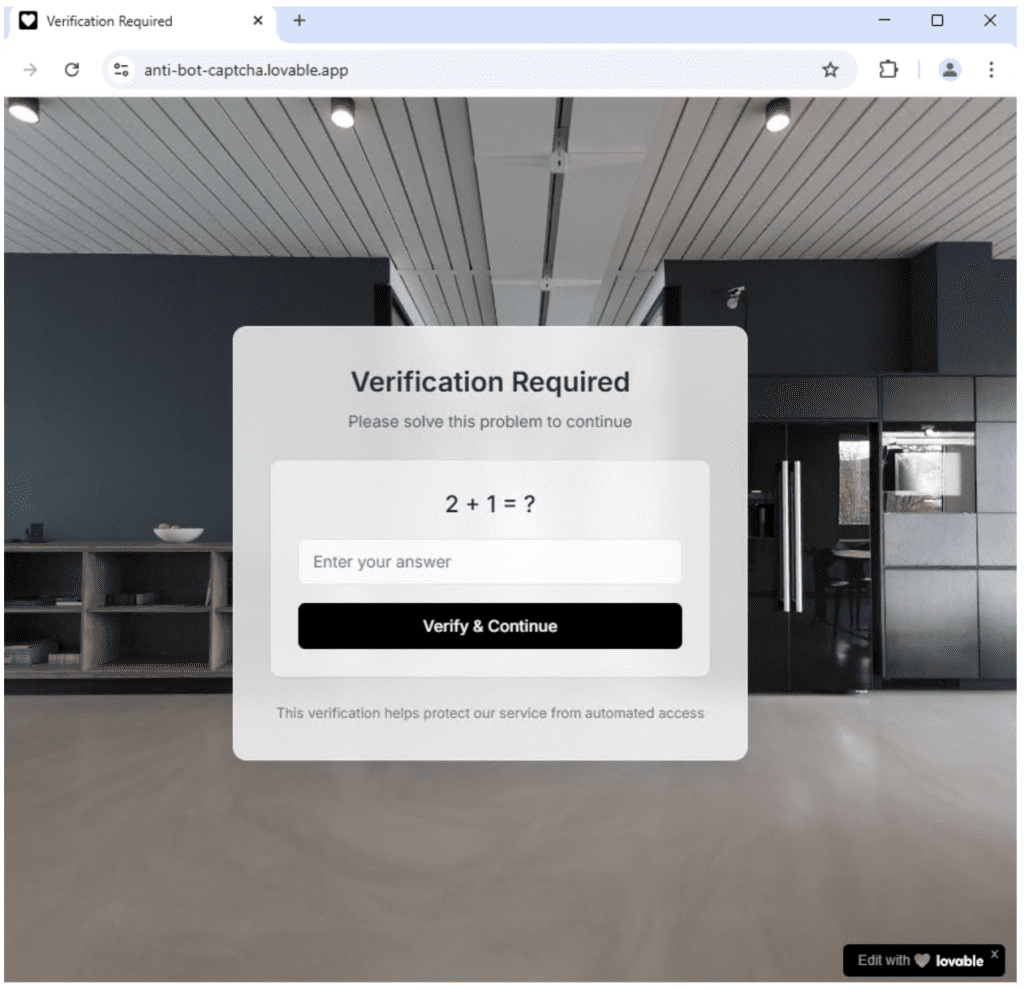 They would then be taken to a web page built in Lovable, requesting the user verifies they are real: