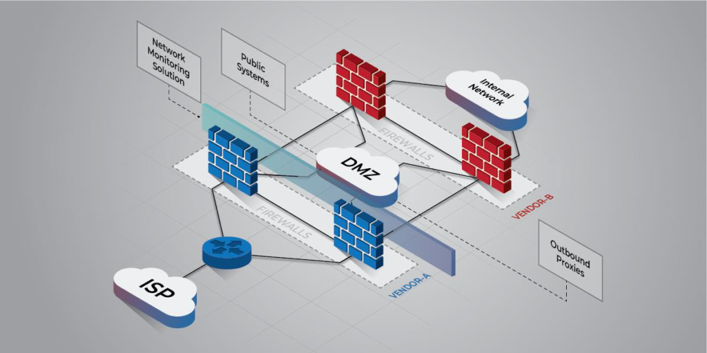 - Implement multiple layers of next-generation firewalls throughout the network to restrict inbound traffic, restrict outbound traffic, and examine all internal activity between disparate network regions. Each layer should utilize different vendors to protect against an adversary exploiting the same unpatched vulnerability in an attempt to access the internal network.