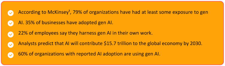 In other words, Al is almost everywhere and generative Al is leading the charge. There is no holding back enterprise and consumer enthusiasm for using gen Al.