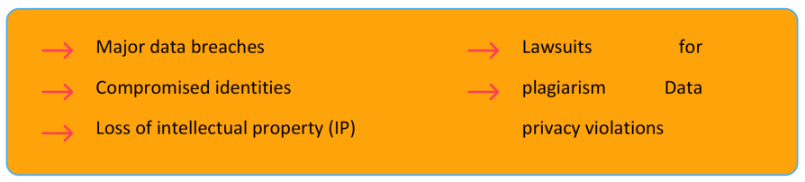 While there are obvious benefits to the use of gen Al, there are also serious risks. Unchecked Al usage in organizations can lead to: